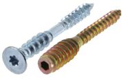 Holzschrauben sind meist in einem Durchmesser von 6, 8 , 10 und sogar 12mm ausgeführt. Sie haben optional einen großflächig aufliegenden Tellerkopf. Der Antrieb ist fast ausschließlich ein Innensechsrund (TX)-Antrieb. Besonders geformte Schrauben-Spitzen, Bohr- oder Frässpitzen oder Rippen am Schraubenkopf ermöglichen das leichtere Verarbeiten der Schrauben.