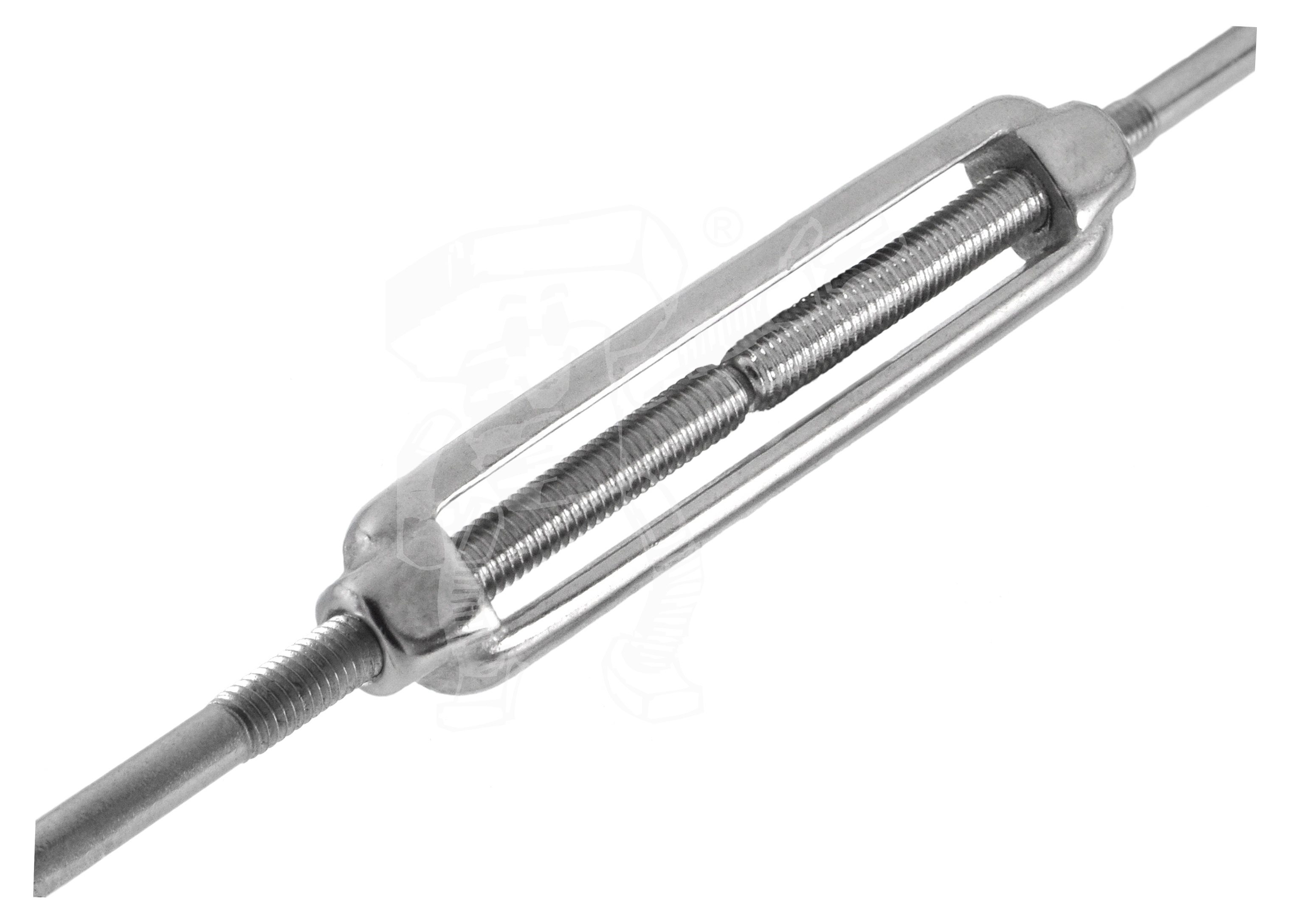 DIN 1480 offene Spannschlösser, 2 Anschweißenden, geschmiedet sind Innengewindehülsen, die an beiden Seiten offen sind, und über ein durchgängiges Innengewinde verfügen. DIN 1480 ist in der Mitte offen, damit Sie jederzeit sehen, wie weit der linke und rechte Teil eingeschraubt ist. Diese Spanschlösser haben auf beiden Seiten jeweils ein Anschweißende. Spanschlösser werden verwendet um eine Stange, ein Seil oder eine Kette auf Zug zu bringen, um eine Konstruktion auszusteifen oder zu sichern.