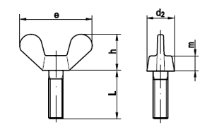 DIN 316 Flügelmuttern runde Flügelform (deutsche Form) sind schöne Schrauben mit metrischem Regelgewinde (M) mit einer leicht konischen Außenform, die zwei radiale Erweiterungen in Form von Flügeln besitzen. Flügelschrauben werden häufig dort eingesetzt, wo ein schnelles Öffnen und Schließen der Mutter gewünscht wird, z. B. bei Deckeln, Gehäusen, Blechen oder Abschlüssen im Maschinenbau, bei Fahrzeugen wie Autos, Motorrädern, Traktoren oder im Modellbau. Auch setzt man sie bei höhenverstellbaren Stangen wie Sonnenschirmen ein. mehr ...