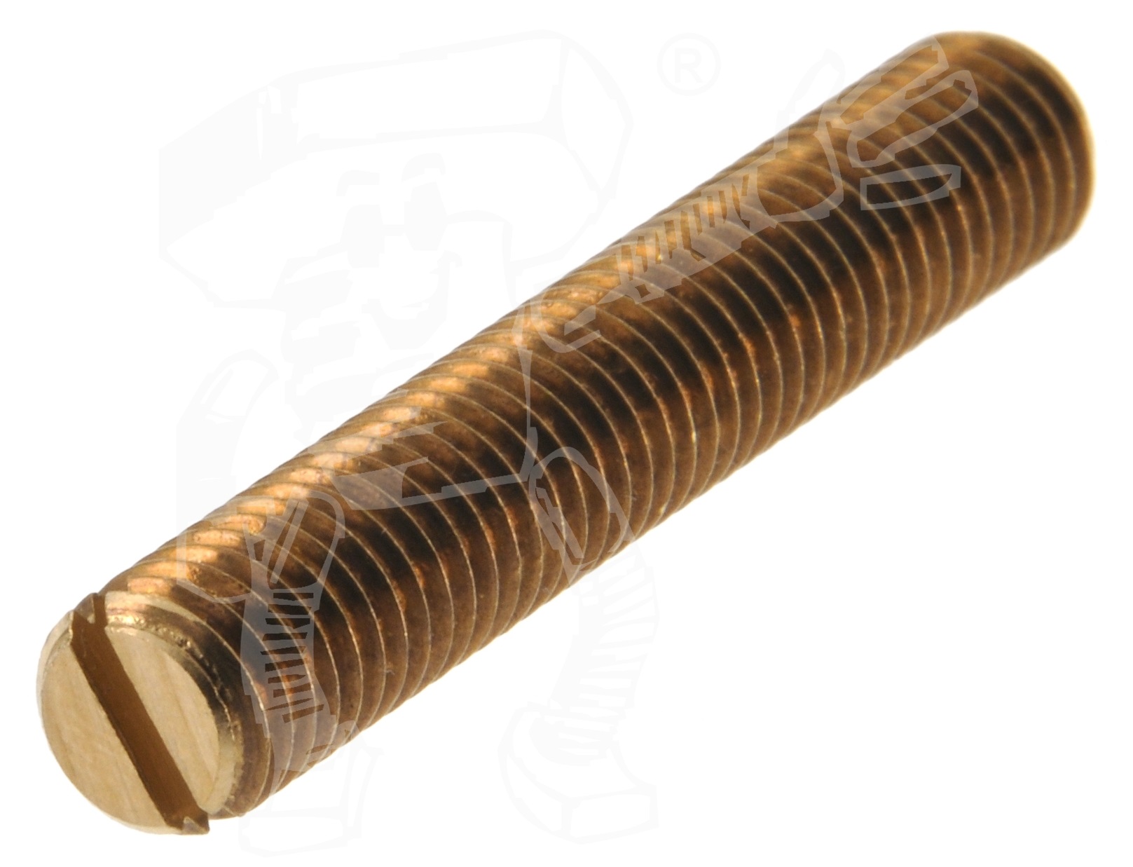 € DIN 551 Gewindestifte mit Kegelkuppe, mit Schlitz sind Gewindespindeln, die auf der einen Seite als Antrieb einen Schlitz haben. Der Schlitz kann mit einem handelsüblichen Schlitz-Schraubendreher verarbeitet werden. Heute sind Schlitzantriebe eher selten geworden, weil diese schlechter zu verarbeiten sind (Gefahr von Abrutschen) als der alternative Innensechskant. Gewindestifte mit Schlitz werden auch als Madenschraube oder Wurmschraube bezeichnet. Die Kegelkuppe ist eine einfache, abgeflachte Abrundung des Gewindestifts, welche eben mit dem Bohrloch abschließen kann.