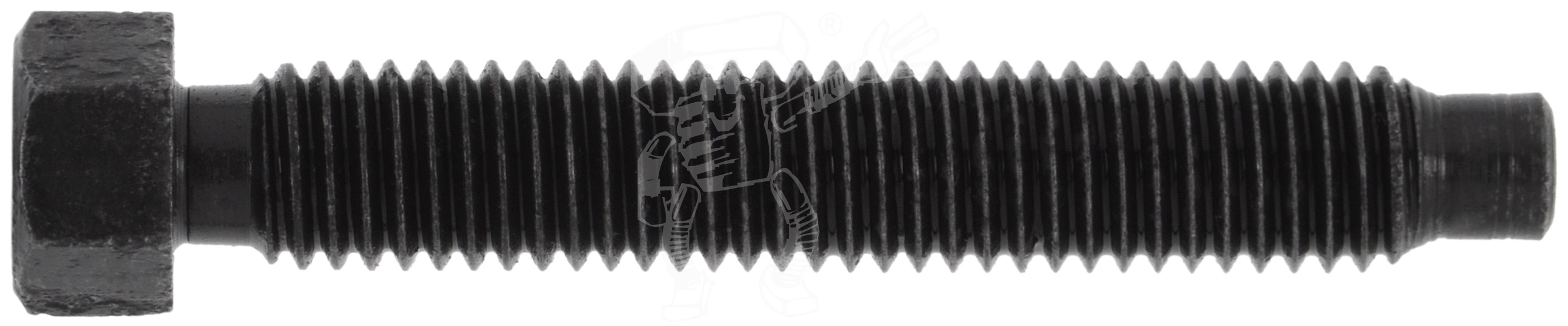 Diese Sechskantschrauben haben ein Vollgewinde und einen Zapfen, der in ein vorgefertigtes Bohrloch eingleiten kann. Außerdem haben sie einen deutlich kleineren Sechskantkopf als gleiche Durchmesser und eine Rille, einen gewindelosen Teil, zwischen Kopf und Gewindeansatz.
