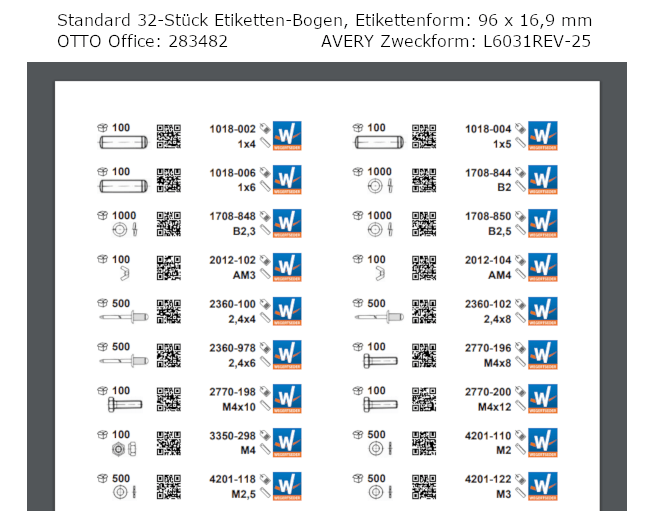 Welche Artikel sollten kleiner verpackt werden? * Nennen Sie möglichst: Name, DIN, Werkstoff und Abmessung