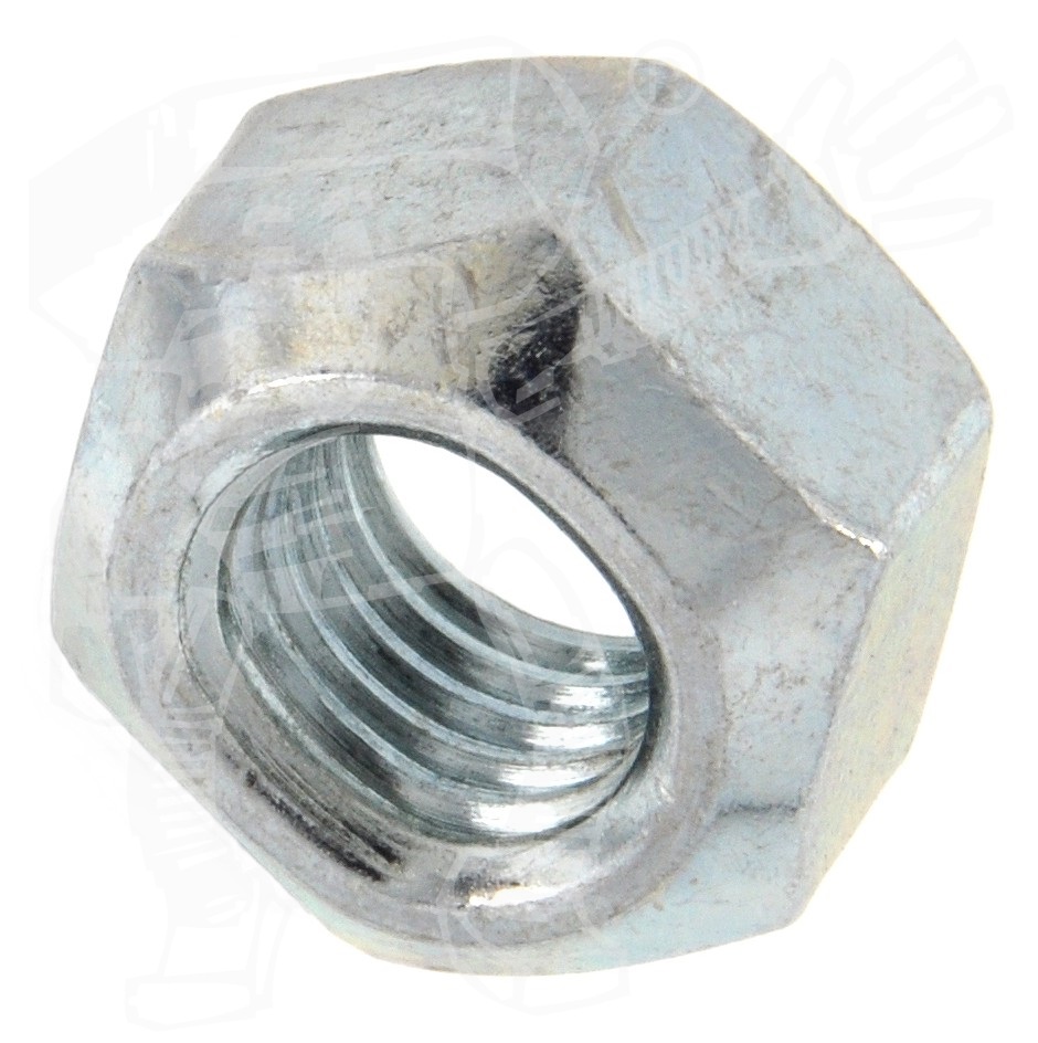Die Sicherungswirkung entsteht über ein Klemmteil aus Metall. Das Gewinde der Schraube verzahnt sich mit dem Metallklemmteil und geht eine Verbindung ein. Muttern mit Metallklemmteil halten höhere Temperaturen aus als solche mit Polyamidklemmteil.
