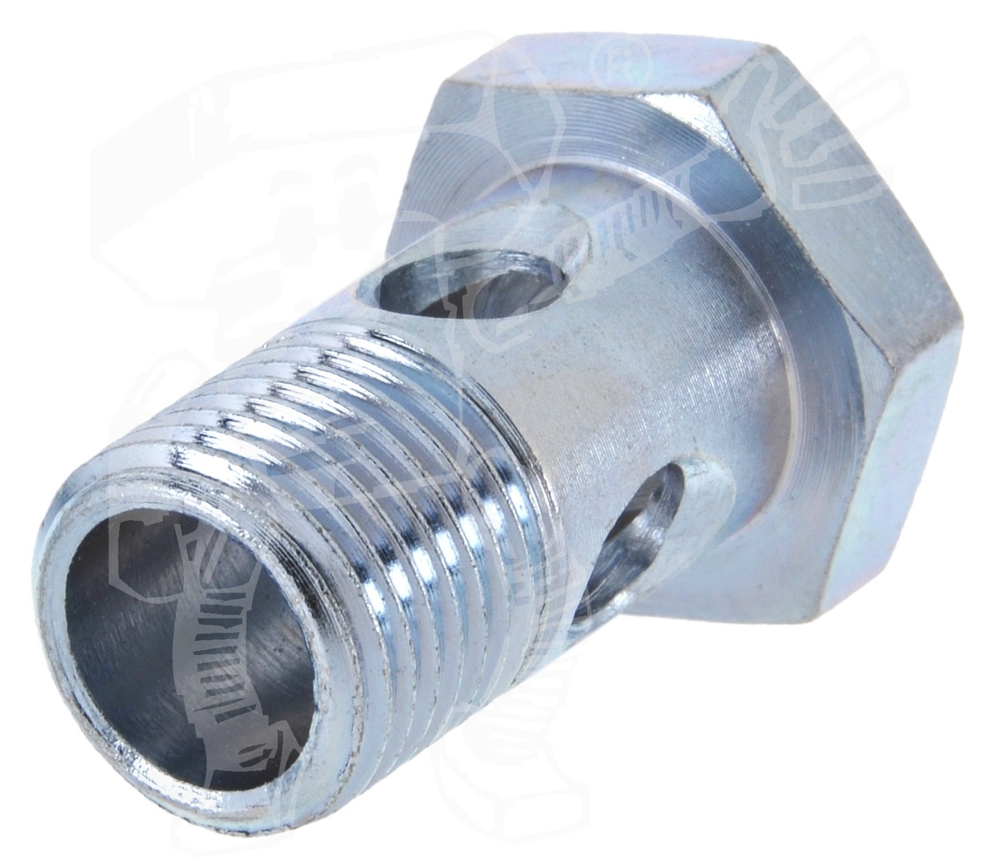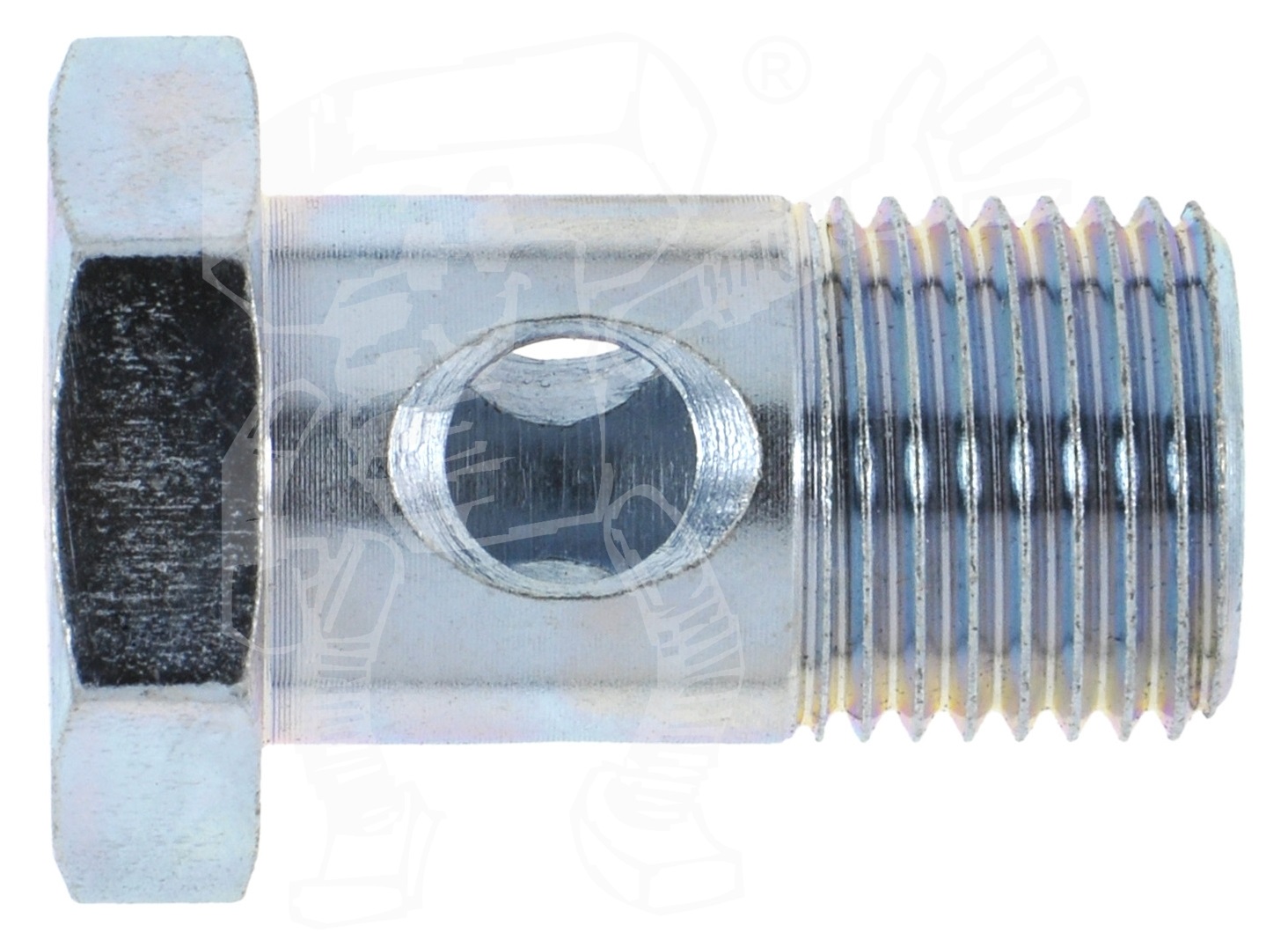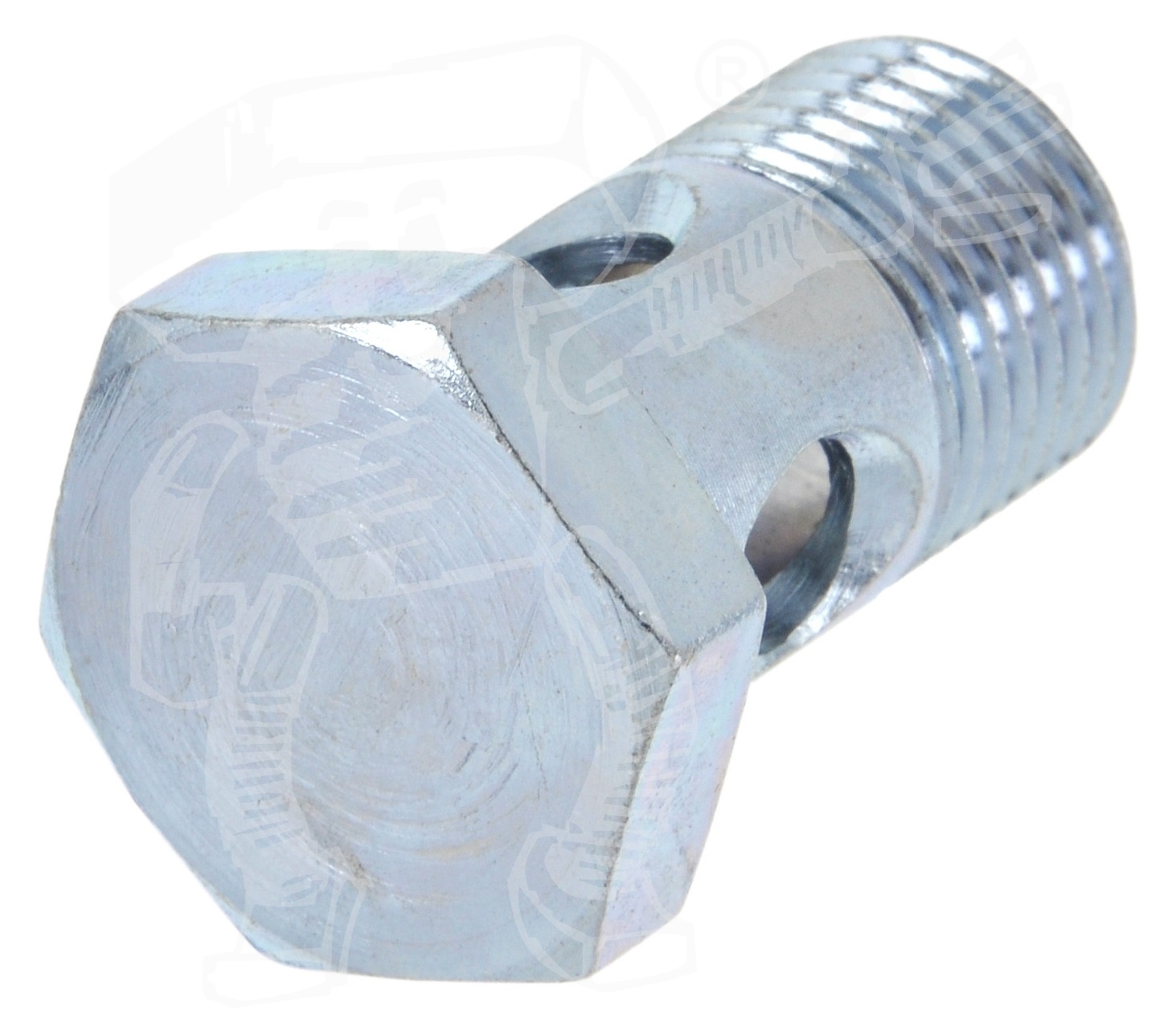 Hohlschrauben sind eine Sonderform der Schrauben mit niedrigem Außensechskant. Das Innere der Hohlschraube ist hohl, deshalb der Name. Der Schaft der Hohlschraube ist geteilt in einen Teil mit Gewinde und ohne Gewinde. Zudem sind im gewindelosen Teil des Schaftes mehrere Bohrungen angebracht. Wir liefern Hohlschrauben in Stahl galvanisch verzinkt mit einfachem Korrosionsschutz. Verwendet werden Hohlschrauben für Druckluft- oder Kraftstoffschläuchen bei Motoren, Kraftfahrzeugen, Traktoren und ähnlichen Großmaschinen.