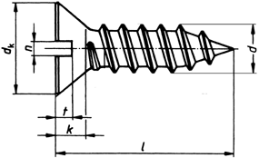 Bauform von DIN 7972 Senk-Blechschrauben mit Schlitz und Spitze