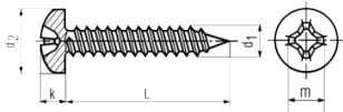 DIN 7981 Linsen-Blechschrauben mit Pozidriv-Kreuzschlitz PZ, C= mit Spitze