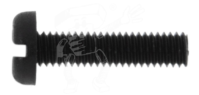 haben ein metrisches Regelgewinde (M), deshalb der Name Gewindeschrauben, und einen Flachkopf. Der Flachkopf ist oben abgeflacht, was ihn vom Zylinderkopf unterscheidet. Diese Form der Gewindeschrauben ist schon sehr alt, was man an der zweistelligen DIN-Norm (DIN 85) erkennt. Heutzutage werden Schlitzschrauben nur noch selten, meist in historischen Anwendungen oder wenn die Schlitzform explizit gewünscht ist, verwendet. Neuere Antriebe wie Kreuzschlitze oder Innensechsrund (TX)® werden von den meisten Kunden in der Verarbeitung als angenehmer empfunden - so kann man dort z. B. nicht so leicht abrutschen wie am Schlitz.