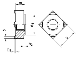 Technische Maße für DIN 928 Vierkant-Schweißmuttern