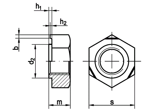 DIN 985 Sechskantmuttern, Polyamidklemmteil, niedrige Form (=Standard)