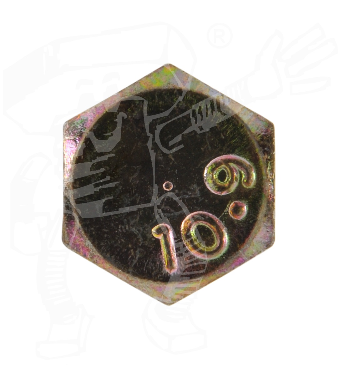 hochfester Stahl, nachträglich gelb verzinkt (Korrosionsschutz, Chrom-VI-haltig), mit einer Festigkeit von 10.9