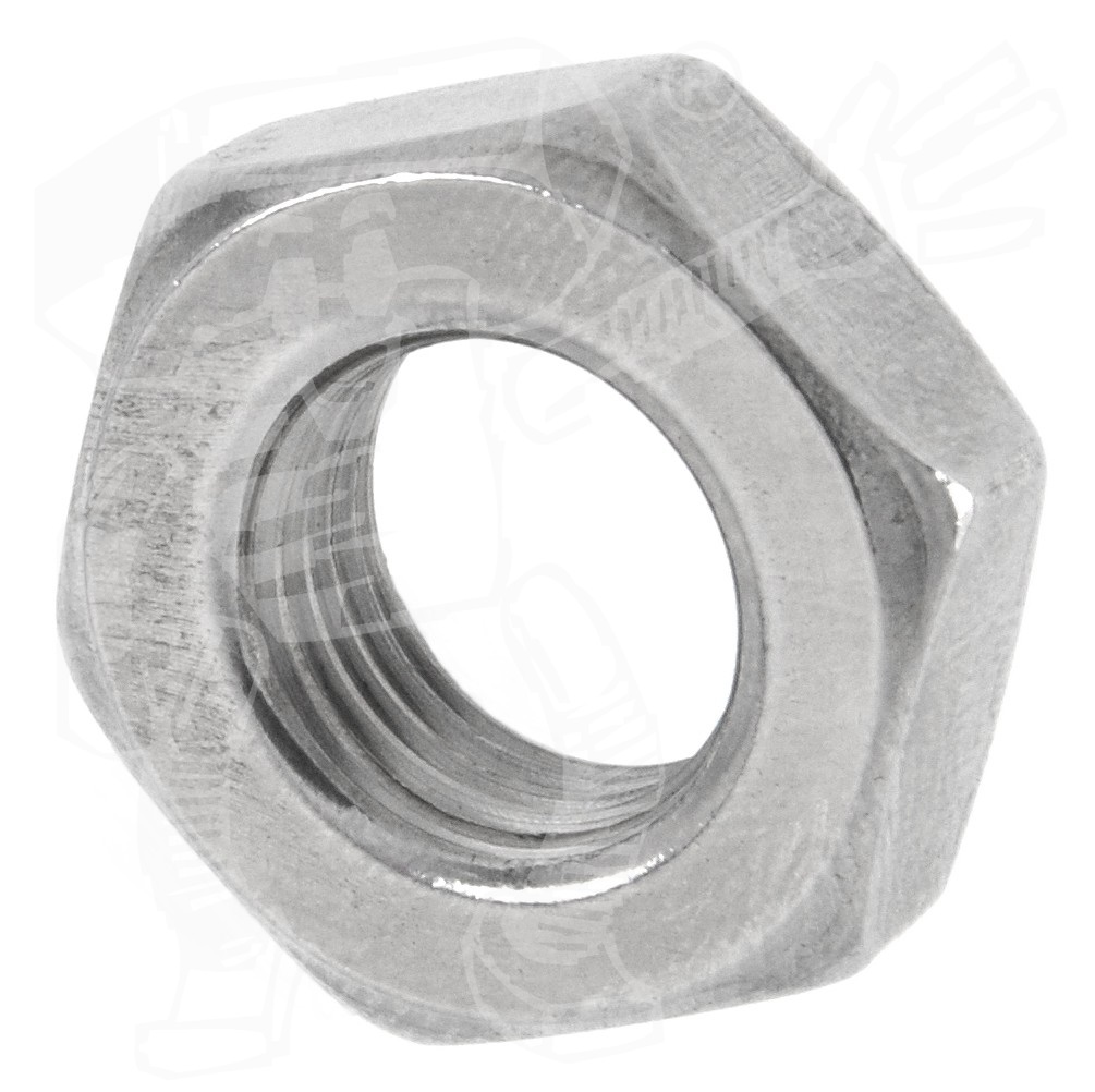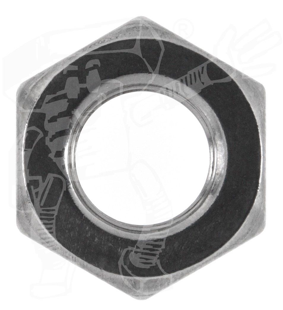 DIN 936 Sechskantmuttern niedrige Form mit FEIN-Gewinde sind mit einem Innengewinde versehene, besonders flache, Gegenstücke zu einer Schraube oder einem Gewindebolzen. Beide zusammen bilden eine Schraubverbindung. Einfach gesagt: eine Sechskantmutter hat nur ein Innengewinde und keinen eigenen Kopf mit Antrieb (Ausnahmen sind die Muttern mit Sechskantansatz). Das metrische FEIN-Gewinde (Mf) ist rechtsgängig und hat auf einen Zentimeter mehr Gewindegänge als Regelgewinde - damit dichtet dieses Gewinde besser ab und hat eine erhöhte Haltekraft.