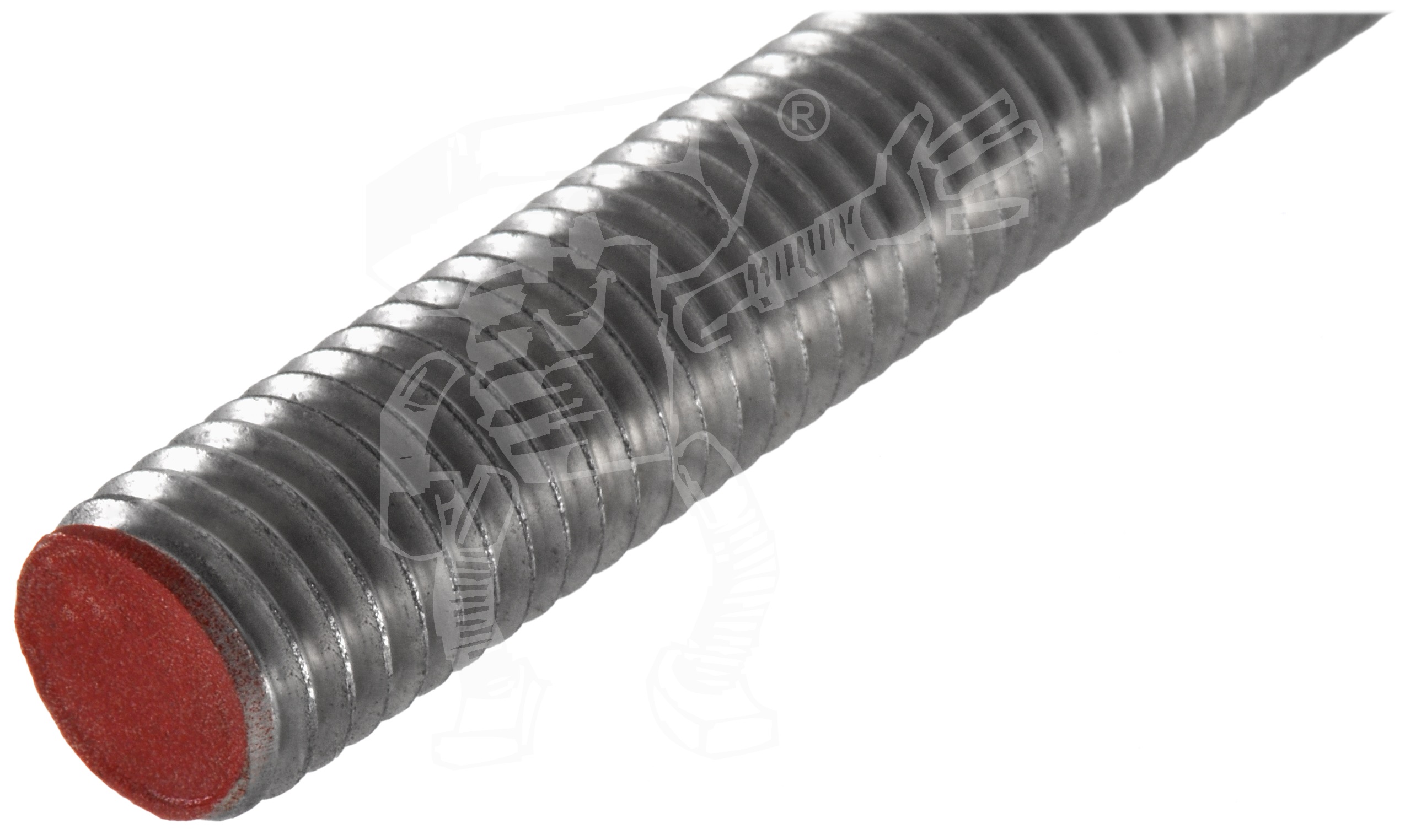 € DIN 976 Gewindestangen, Länge 1000 mm sind meterlange Stäbe mit Außengewinde, die auf beiden Seiten weder einen Kopf noch Antrieb besitzen. Der Werkstoff einer Gewindestange ist meist beidseitig an einer farblichen Kennzeichnung erkennbar. Sie haben ein rechtsdrehendes metrisches Regelgewinde (M).