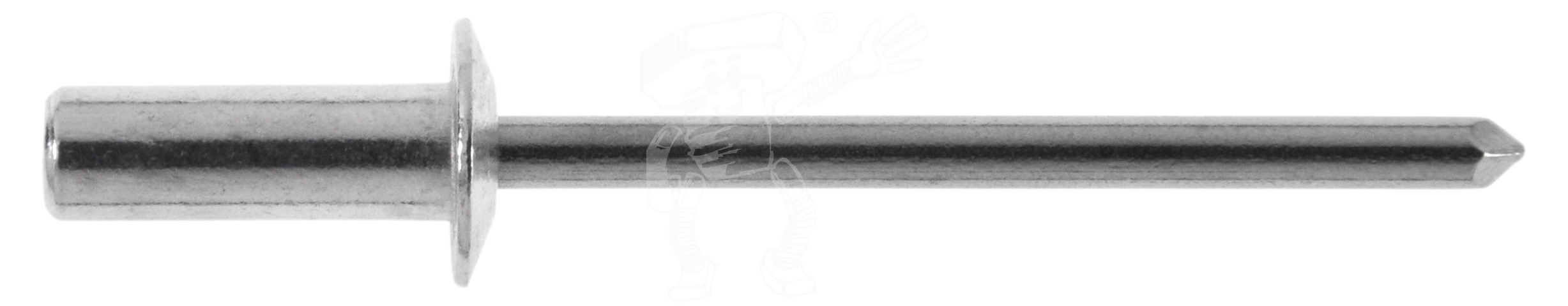 Die Angabe des Werkstoffs bei Blindnieten ist immer zweiteilig, z.B. Stahl-Stahl. Der erste Werkstoff steht für den Niet, also den "oberen" Teil der Blindniete, der sich später zu einer Wulst umformt. Der zweite Teil hinter dem Bindestrich steht für den Werkstoff des Dorns, an dem später die Blindniete mit der Blindnietzange angezogen wird. Da Wasserkontakt besteht, ist Edelstahl Rostfrei A2 oder A4 empfehlenswert.