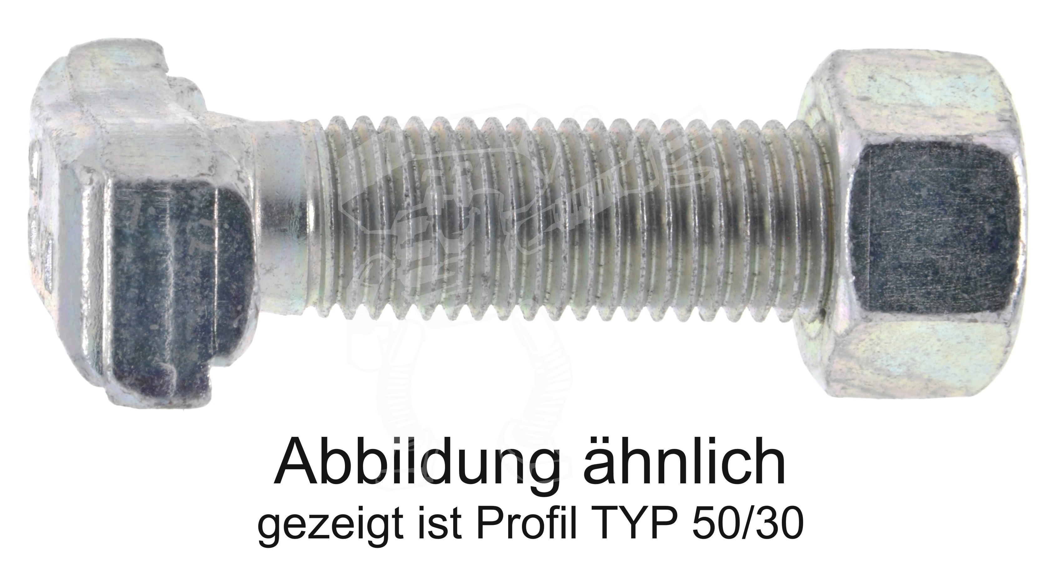 Hammerkopf-Halfen-Schrauben, TYP 28/15, mit Sechskantmutter, für Profile 28/15 - 28/12 - 28/28 - 26/26 STAHL 4.6 - verzinkt