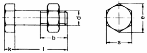 Technische Maße für ISO 4016 Sechskantschrauben mit Schaft und Mutter nach ISO 4034