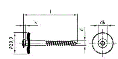 Lieferbare Werkstoffe dieser Spenglerschraube mit 20 mm Dichtscheibe und Innensechsrund (TX) sind Edelstahl Rostfrei A2 sowie Edelstahl Rostfrei A2 verkupfert.