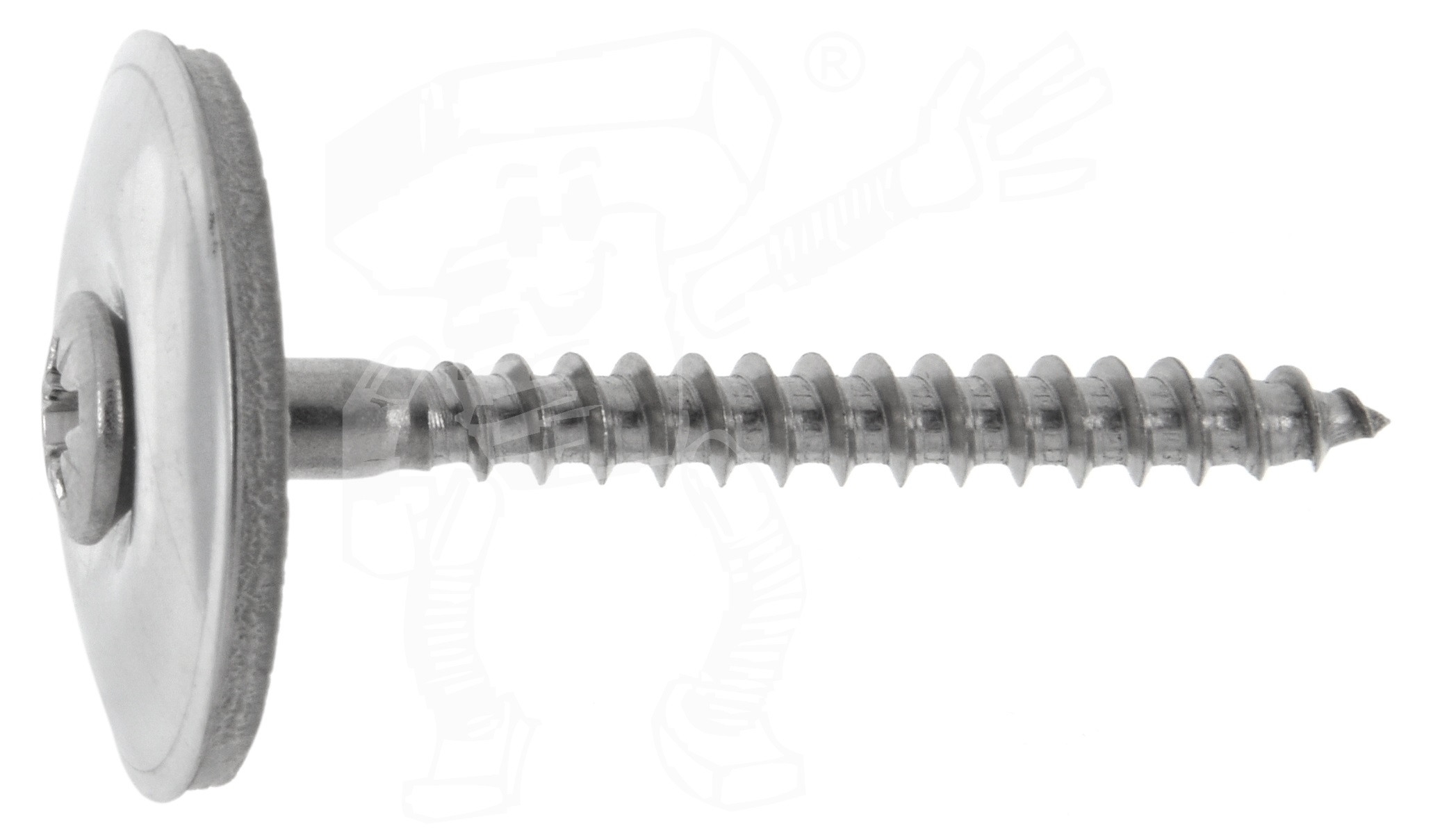 € Linsen-Senkkopf-Spenglerschrauben mit EPDM mit Dichtscheibe 25 mm und POZIDRIV-Kreuzschlitz PZ sind Schrauben mit Blechgewinde, die eine besonders auffällige große Dichtscheibe unterhalb des Kopfes und einen relativ kleinen Linsen-Senkkopf haben. Die Dichtscheibe ist aus EPDM (Ethylen-Propylen-Dien-Kautschuk), umgangssprachlich Neopren. Die Scheibe dichtet den Schraubenkopf gegenüber dem Bohrloch gegen Regen, Schnee, Feuchtigkeit und Wind ab. Der Kopf dieser Schraube ein Linsensenkkopf. Der Schraubenkopf verschwindet im Senkteil der Senkrosette, sodass am Ende nur noch die formschöne Linse übrig bleibt. Ein Vorsenken ist nicht erforderlich, da die Rosette eben aufliegt und nicht versenkt wird. Als Antrieb verfügen diese Schrauben über einen Pozidriv-Kreuzschlitz PZ, der mit normalen PZ-Bits verarbeitet werden kann.
