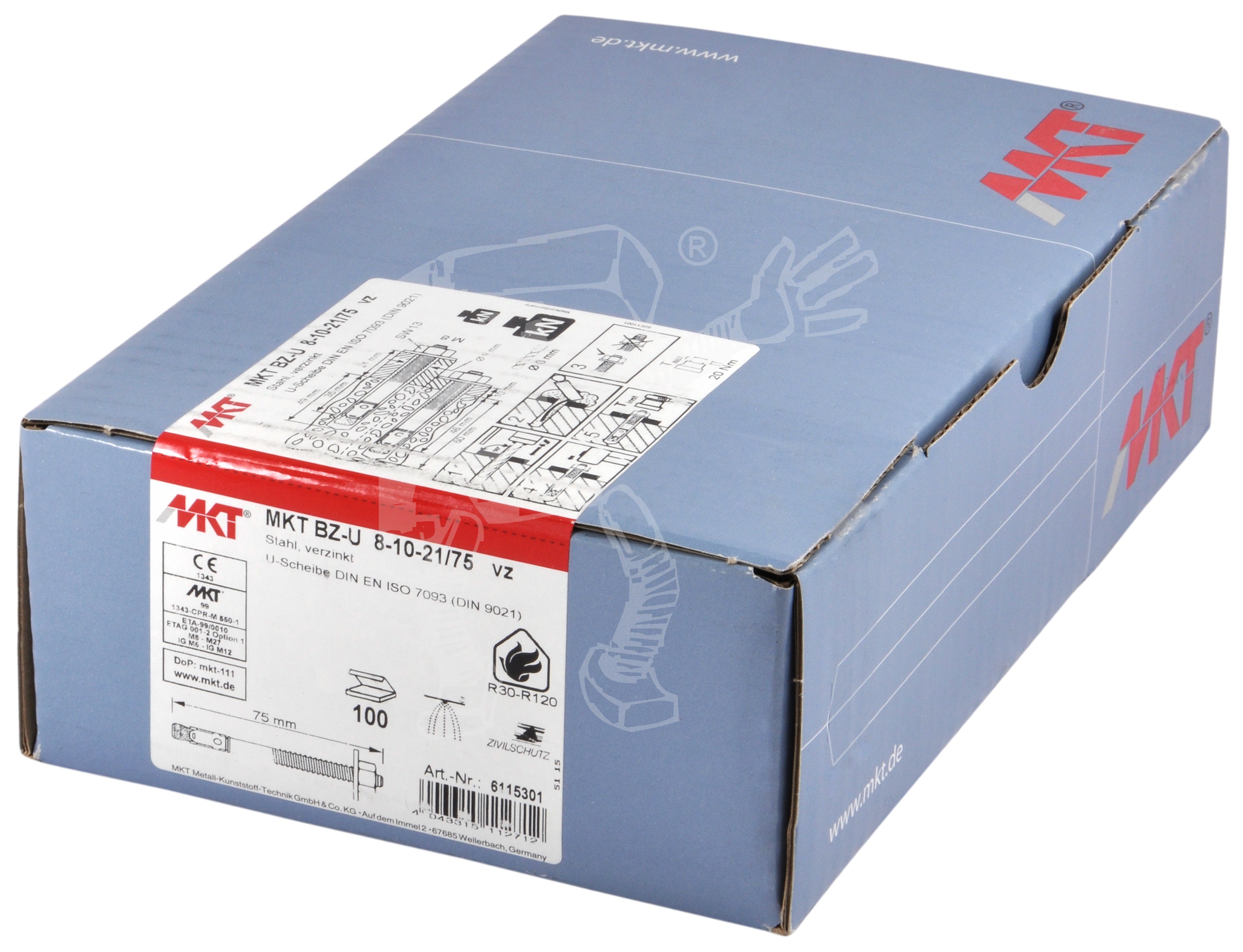 MKT BZ-U plus Bolzenanker mit großer Scheibe (Zug+Druckzone) STAHL - verzinkt