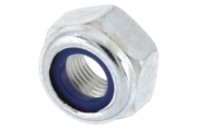 Sicherungsmuttern mit Kunststoff-Ring in der niedrigen Form (= normale Form) sind Sicherungsmuttern. Der Kunststoff-Ring verbindet sich beim Eindrehen mit entsprechend erhöhter Kraft mit dem Schraubengewinde, wodurch eine Sicherungswirkung eintritt. Nach der Demontage darf die Kunststoff-Sicherungsmutter nicht wiederverwendet werden. Der Kunststoff-Ring ist nur bedingt beständig gegen höhere Temperaturen. Die Farbe ist leider nicht genormt; oft sind die Ringe jedoch blau, grün oder weiß/transparent.