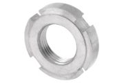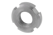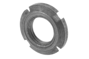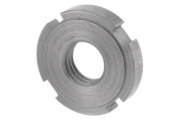 sind runde Maschinenelemente mit vier Schlitzen (= Nut) zur axialen Sicherung von Welle-Nabe-Verbindungen, z.B. von Zahnrädern auf einer Welle. Sie haben einen großen Innen- aber kleinen Außendurchmesser. Das Innengewinde ist als metrisches Feingewinde ausgeführt. Feingewinde hat je Zentimeter mehr Gewindegänge. Die Schraubenverbindung hält somit fester, man benötigt aber auch mehr Umdrehungen zur Montage. Nutmuttern werden mit einem Hakenschlüssel - auch Nutmutternschlüssel genannt - montiert. mehr ...
