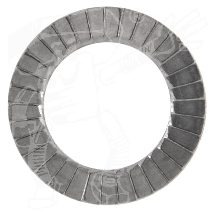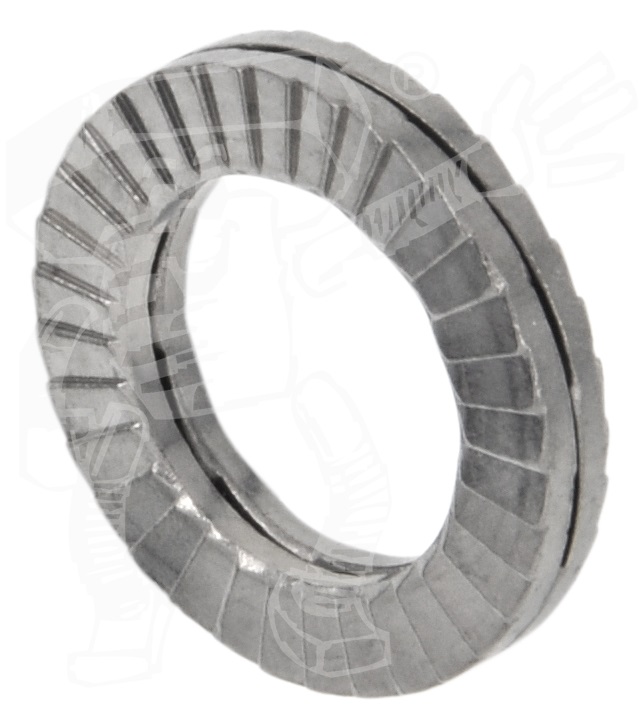 € NORD-LOCK-Scheiben Standard (Keilsicherungsscheibenpaare paarweise verklebt) sind Sicherungsscheiben zum Unterlegen unter eine Schraube oder Mutter. Sie haben auf beiden Seiten eingepresste Sperrringe. Diese sichern die Scheibe gegen Verdrehen und verzahnen sich mit dem Untergrund. Dadurch wird eine bessere Kraftübertragung ermöglicht. Zusätzlich ist, anders als z. B. bei Fächerscheiben, das Verkratzen der Oberfläche deutlich geringer und auch weniger sichtbar. Sperrkantscheiben verlieren ihre Sicherungswirkung auch bei steigender Kraft nicht, anders als Federringe.