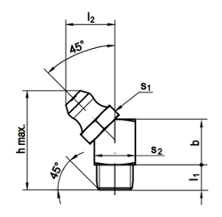 DIN 71412 Kegelschmiernippel, kurz, B= Kegelkopf, 45 Grad abgewinkelt