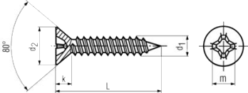 DIN 7982 Senk-Blechschrauben mit POZIDRIVE-Kreuzschlitz PZ, C= mit Spitze