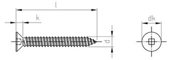 DIN 7982 Senk-Blechschrauben mit VIERKANT, C= mit Spitze
