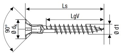 Art. Senkkopf -Spanplattenschrauben Fräsrippen, Schneidkerbe, Innensechsrund (TX)