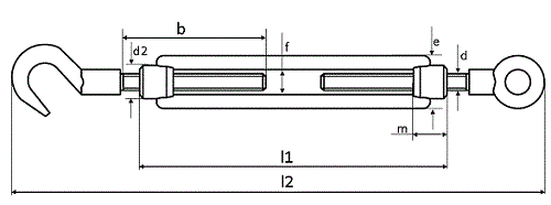 Spannschlösser offen, ähnlich DIN 1480, RH= 1x Ringöse und 1x Haken