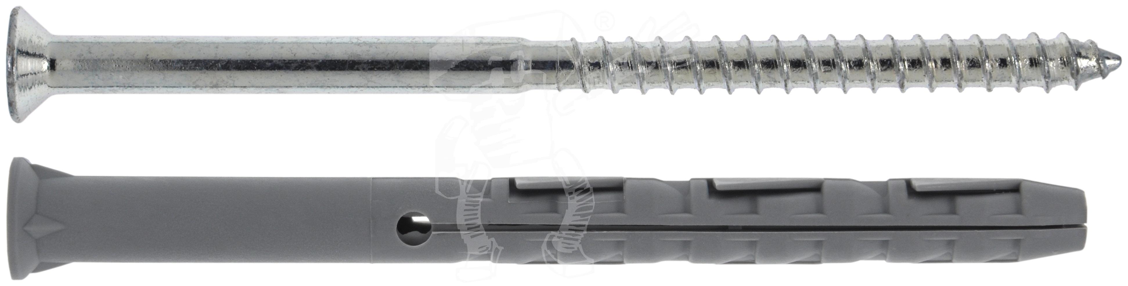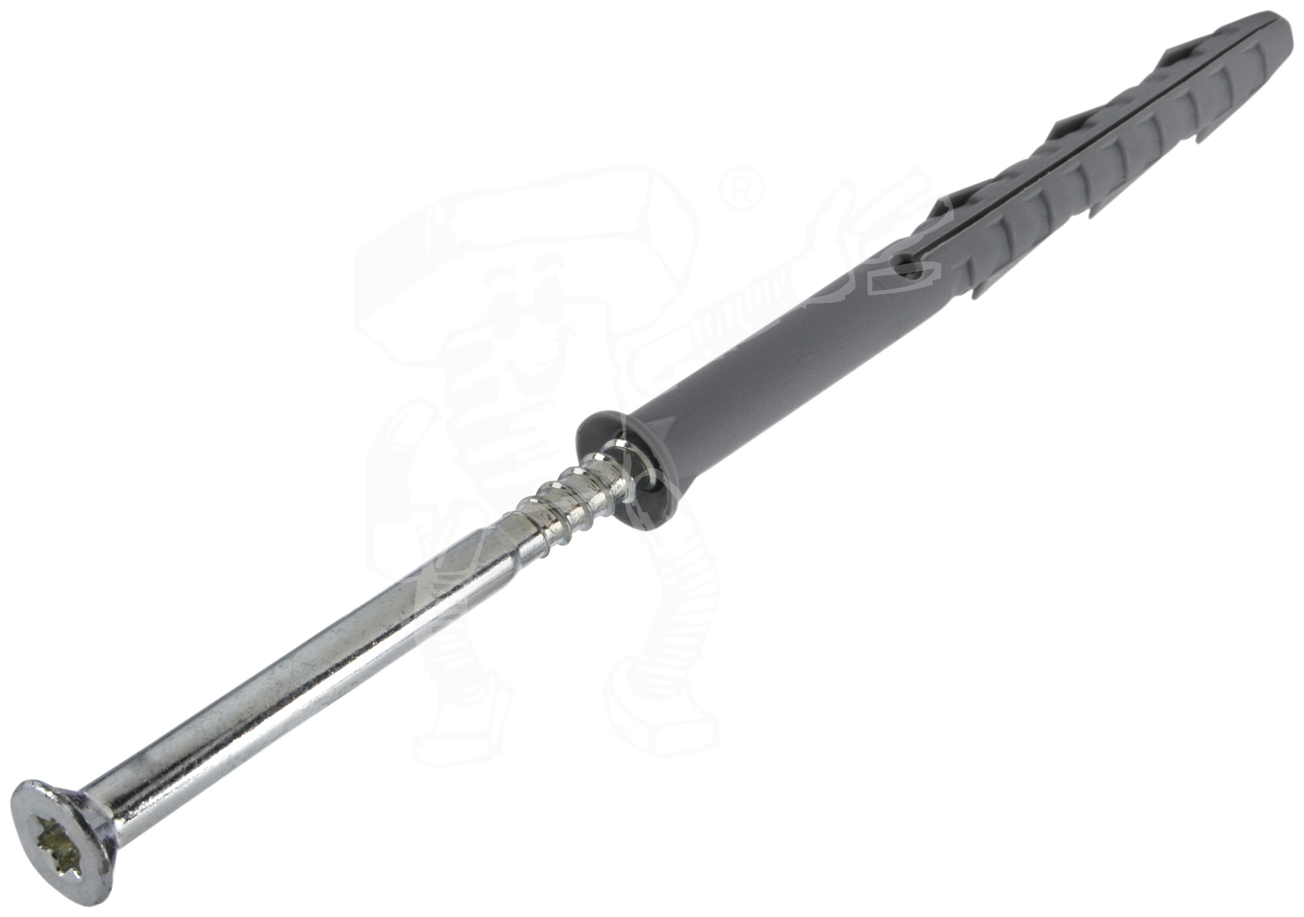 Rahmendübel mit einer langen Spreizzone "RLT" aus reinem Nylon mit verzinkter Innenstern-Schraube. Schnelle Befestigung in nicht massiven Materialien wie Leichtbaustoffen und Hohlkammersteinen.