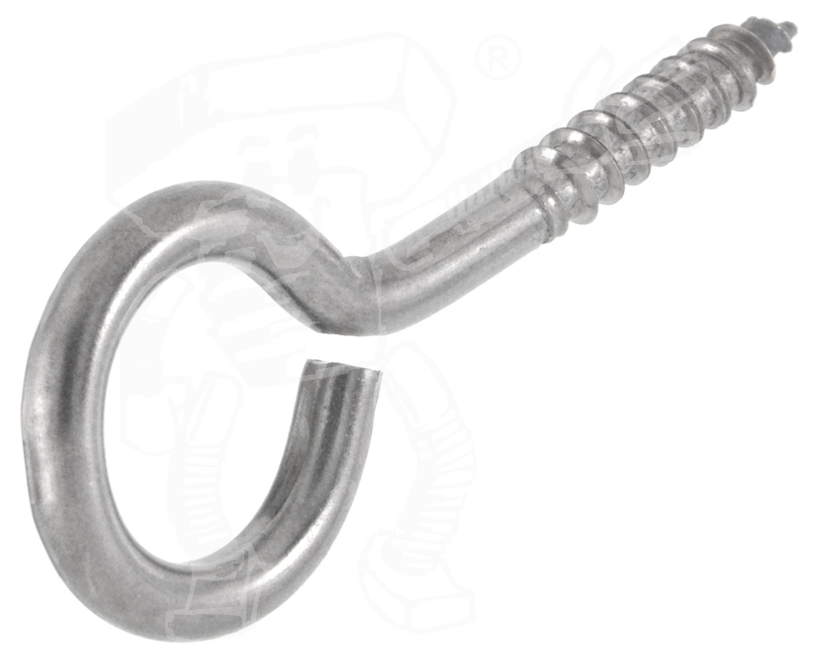 sind ein geformter Blechdraht mit einem Gewinde für Holz auf der einen und einem geschlossenen runden Ösenkopf auf der anderen Seite. Sie werden verwendet, um Gegenstände zu befestigen, z. B. Spiegel, Uhren, Bilder. Sie können Schraubhaken mit Holzgewinde direkt in das Material eindrehen. Bei Hartholz muss vorgebohrt werden.