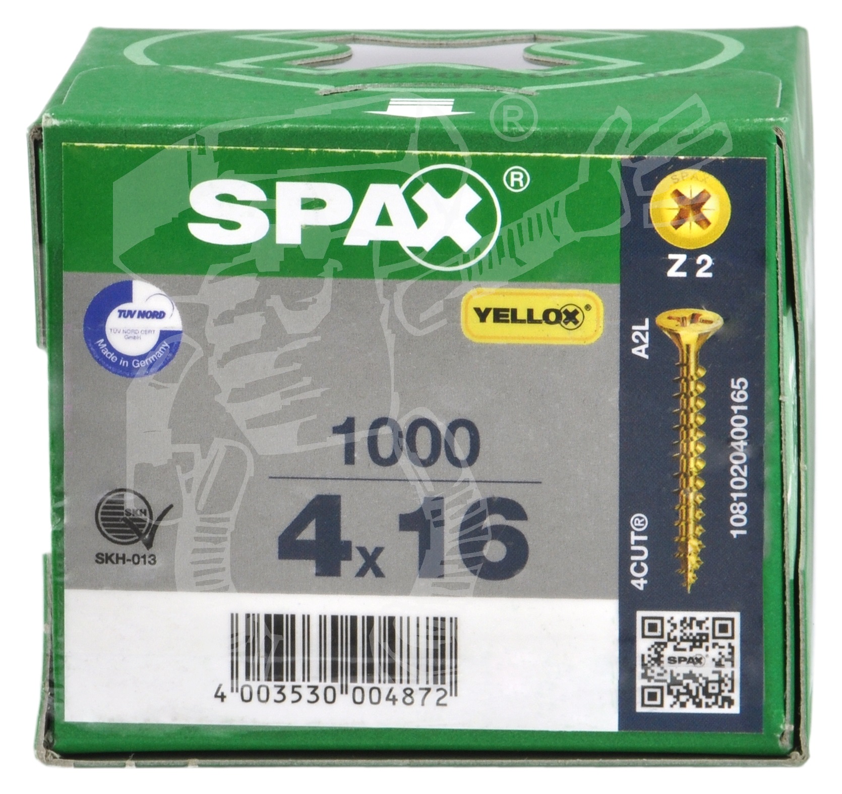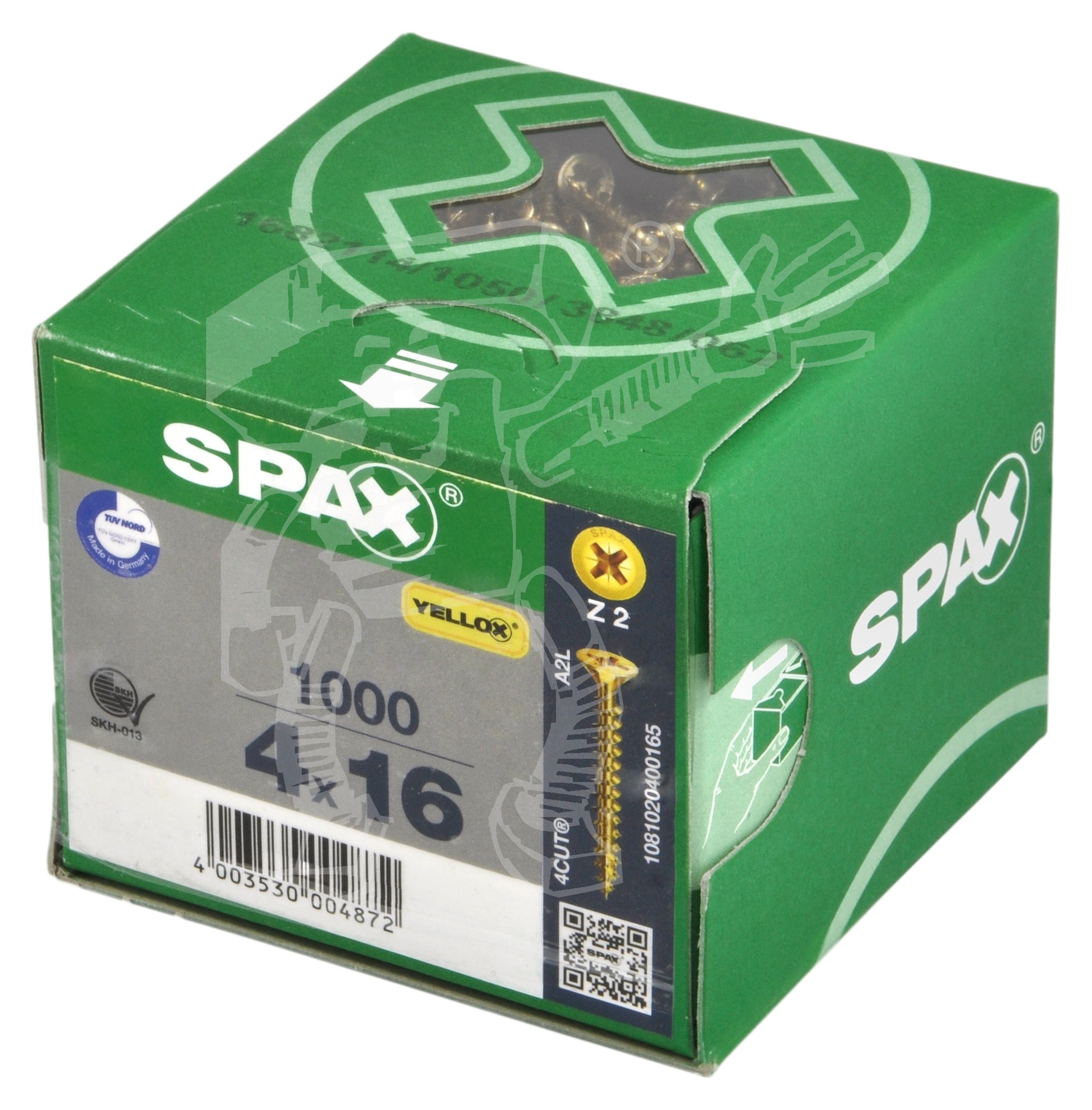 Der Markenname ""SPAX"" hat sich im allgemeinen Sprachgebrauch als Bezeichnung für alle Universal- und Spannplattenschrauben durchgesetzt, dies ist aus der Marktführung der original SPAX-Produkte abzuleiten. Viele Kunden verwenden fälschlicherweise die Bezeichnung SPAX-Schrauben für jegliche Arten von Spanplatten- oder Universalschrauben. Hinter dem allgemeinen Oberbegriff verstecken sich oftmals ""billige Schrauben"" aus Niedriglohnländern, die mit SPAX® in keinerlei Beziehung stehen. SPAX® ist der Produktname der SPAX International GmbH & Co. KG, einem der führenden deutschen Hersteller von Schrauben, und gehört zur ALTENLOH, BRINCK & CO – Gruppe, vielen bekannt als ABC. Sowohl im Schreiner- und Zimmereihandwerk, im Innenausbau, im Holz- oder im Möbelbau, aber auch bei Heim- und Handwerkern, bei Planern, Architekten und Statikern haben sich die Produkte von SPAX® eine marktführende Position aufgrund ihrer überzeugenden Qualität erarbeitet. Vertrauen Sie der Erfahrung der Profis und entscheiden auch Sie sich für die Produkte von SPAX®.