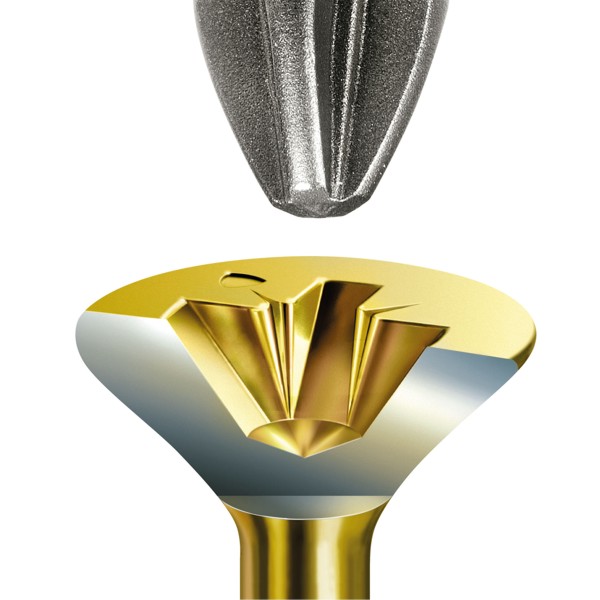 -Der Pozidriv-Antrieb (PZ) sorgt für eine sichere und saubere Führung zwischen Schraube und Werkzeug