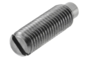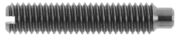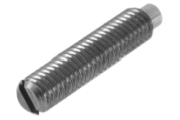 Gewindestifte mit Schlitz und Zapfen sind durchgehende Gewindespindeln, die einerseits zur Verarbeitung einen geradem Schlitz und auf der anderen Seite einen Zapfen haben. Im zu fixierenden Bauteil wird an der Stelle ein Bohrloch hergestellt, in welches der Zapfen einsinken und das Bauteil sichern soll.