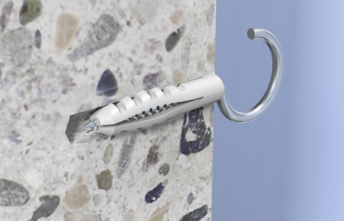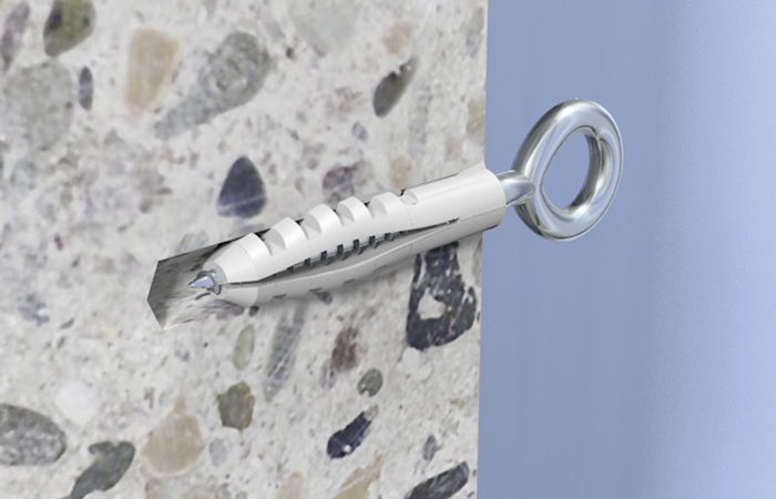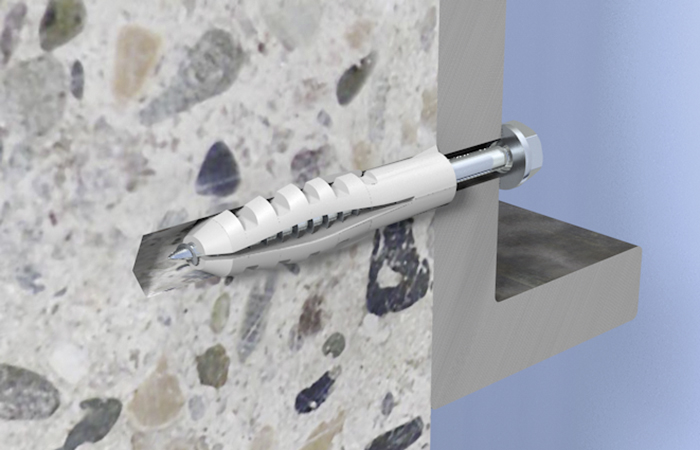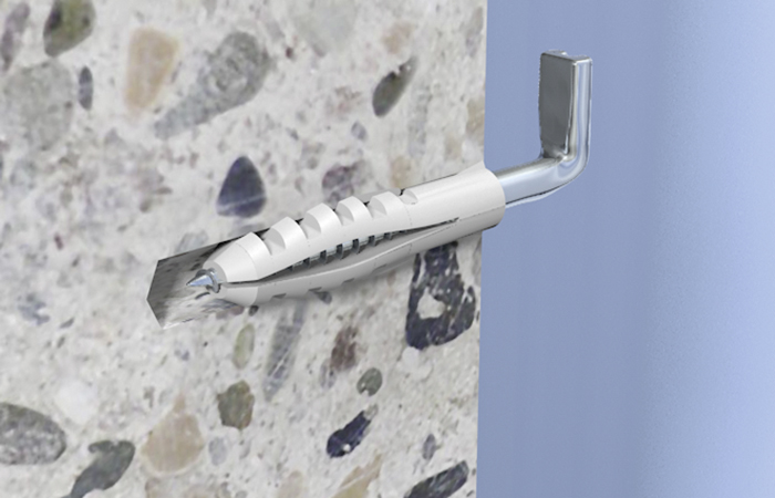 • Die schlanke Dübelgeometrie ermöglicht ein leichtes Einstecken des Dübels in das Bohrloch für eine schnelle und einfache Montage.