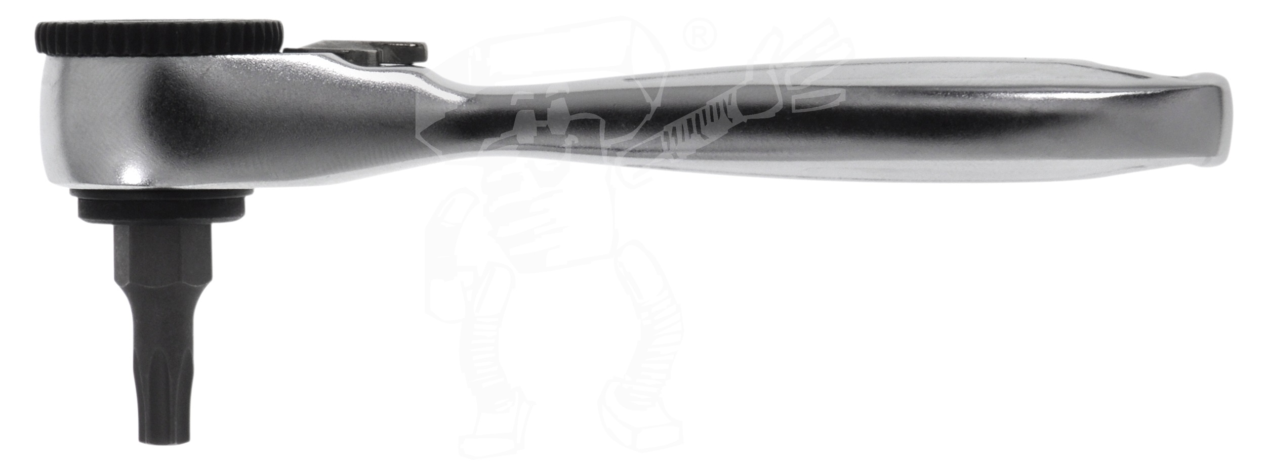 Die Knarre ist mit allen gängigen Bits und Magnethaltern verwendbar, durch ihre kompakte Bauweise ist sie bestens für Schraubarbeiten auf engstem Raum geeignet.