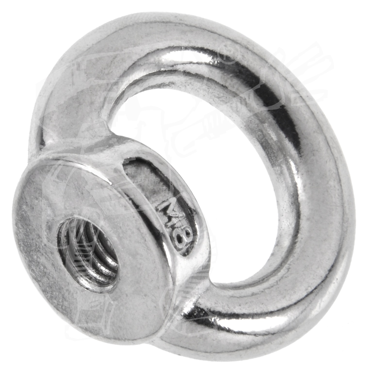 Ringmuttern sind ein sicherheitskritisches Bauteil. Eine garantierte Belastbarkeit bietet Ihnen NUR eine Ringmutter, welche DIN 582 voll erfüllt. Unsere Ringmuttern sind 'ähnlich nach DIN 582' gefertigt. Das heißt, sie sehen aus wie Ringmuttern nach dieser Norm, erfüllen aber NICHT die in der Norm angegebenen Kräfte. Für sicherheitsrelevante Anwendungen, z. B. das Heben von schweren Lasten mit einem Kran, dürfen Sie diese Ringmuttern 'ähnlich nach DIN 582' daher NICHT verwenden! Es dürfen nur unbedeutende Lasten in unkritischen Anwendungen gehoben werden