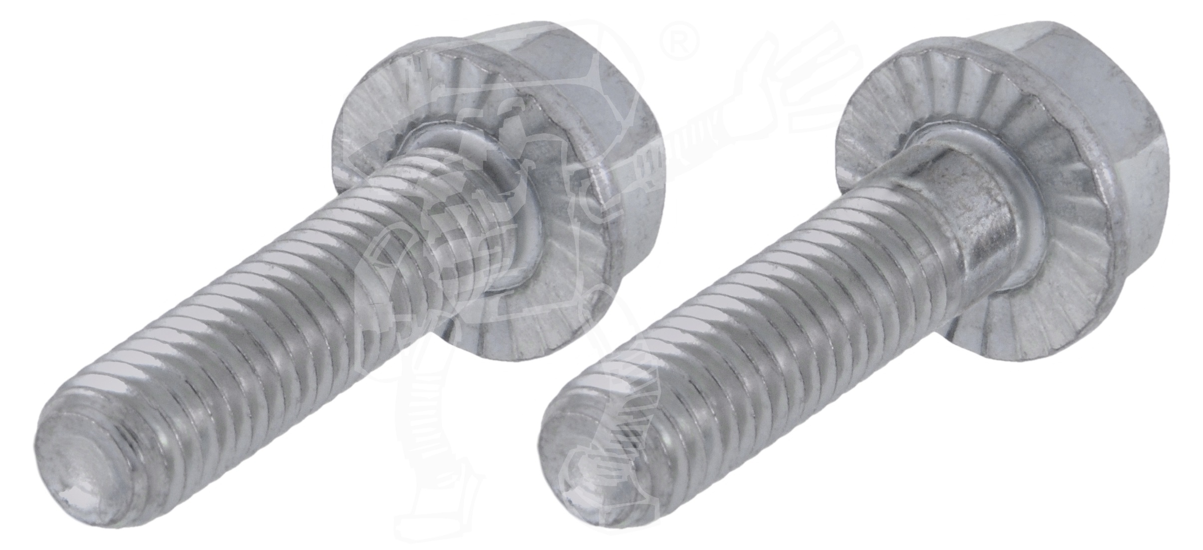 ähnlich DIN 6921 Sechskant-Flanschschrauben mit Sperrzähnen sind Schrauben mit Außensechskant und einem Flansch an der Unterseite des Schraubenkopfes. Am unteren Ende des Kopfes haben sie eine angebrachte Vergrößerung in Form einer angepressten Scheibe. Eine zusätzliche Sicherung bieten die Sperrzähne unterhalb des Kopfes, welche den Schraubenkopf mit dem Untergrund zusätzlich verzahnen.